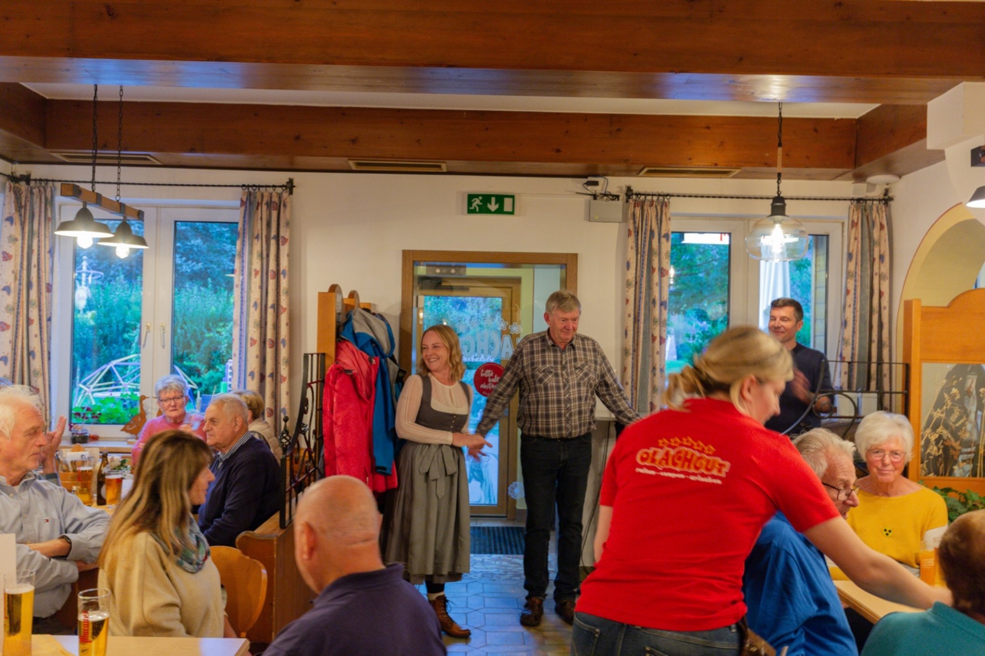 Mittwoch/Freitag: Um 18 Uhr starteten wir mit der Begrüßung. Vom ÖCC hießen Tomas und Maria die Teilnehmer willkommen und auch der Chef des Platzes Heimo richtete ein paar Worte an unsere Mitglieder. Alle lauschten gespannt bei einem Glas Gärtnerin, eine Kräuterlimo mit Gin. Anschließend wurden wir beim steirischen Abend mit einer kräftigen Suppe und einem Bauernschmaus kulinarisch verwöhnt. Für die musikalische Unterhaltung sorgte ein zünftiger Zieharmonikaspieler. Es wurde ausgelassen geplaudert, geschunkelt und die gemeinsame Zeit genossen.