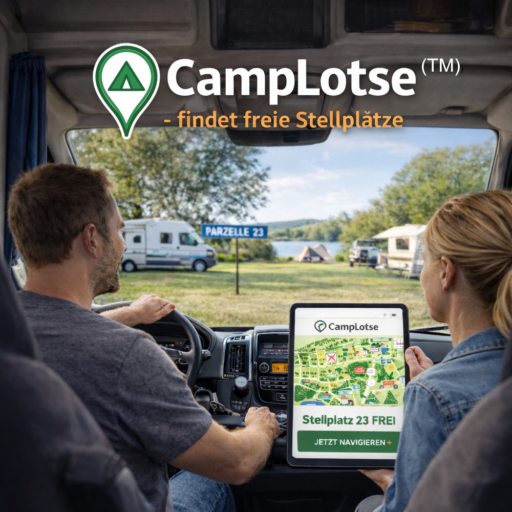 Der CampLotse ermöglicht eine Echtzeit-Suche nach freien Stellplätzen und bietet die Möglichkeit, spontan online zu buchen – perfekt für flexible Campingausflüge.