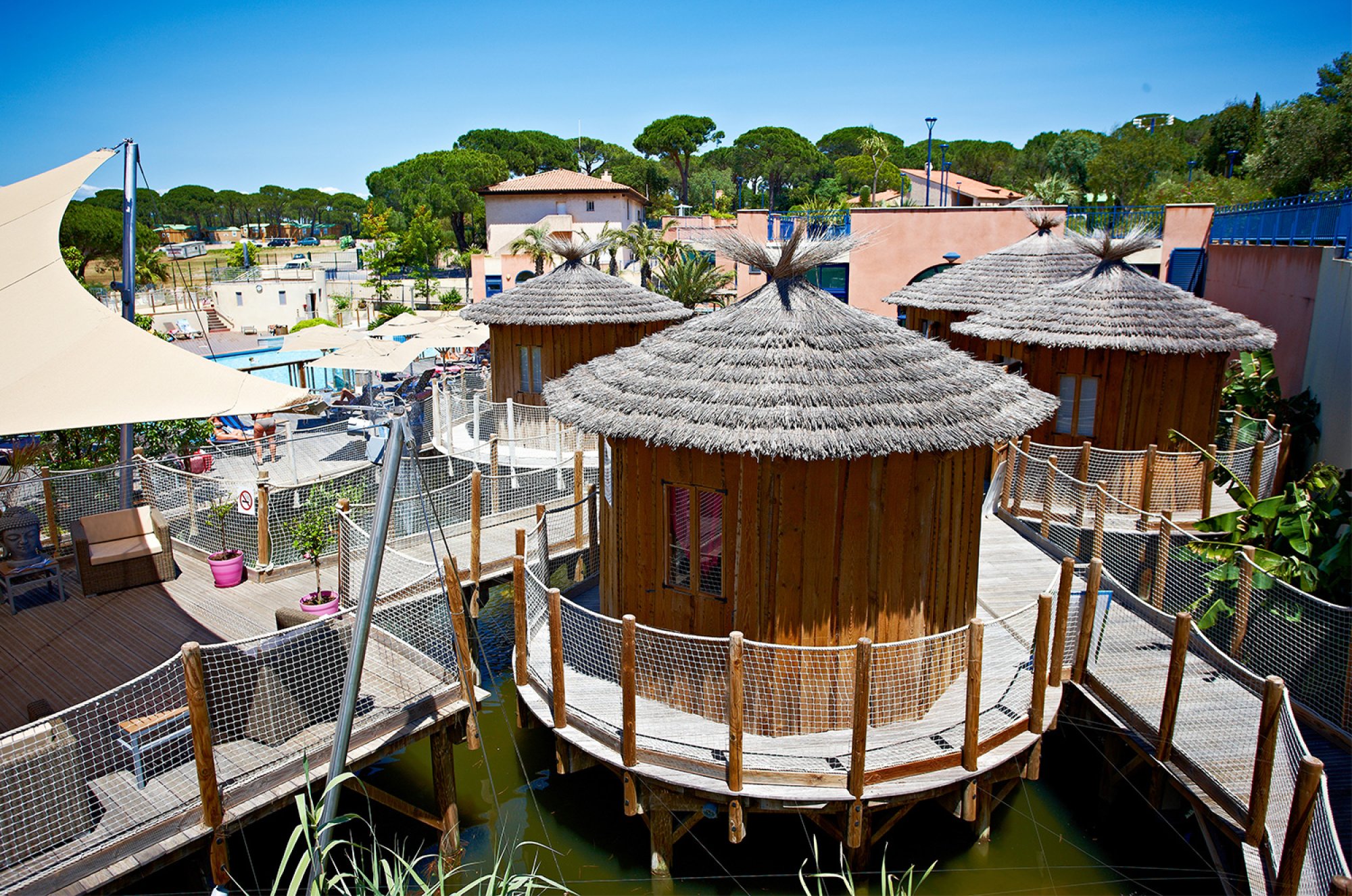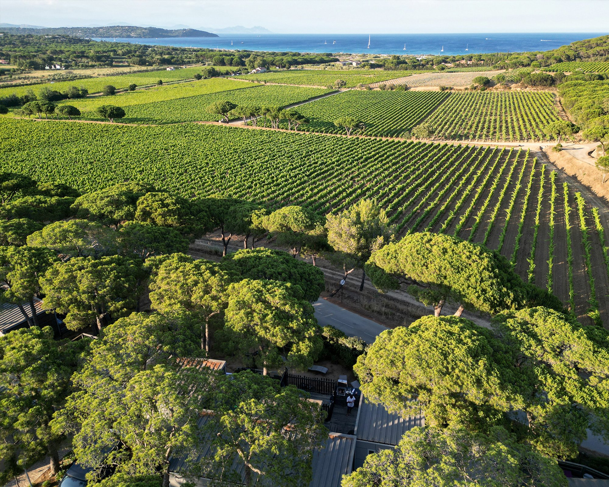 Schließen Sie die Augen und lassen Sie sich vom Zirpen der Grillen und dem Duft der Pinien ins Paradies entführen. Eingebettet in einen hundertjährigen, 20 Hektar großen Pinienwald und umgeben von Weinbergen, genießt unsere Anlage eine ideale Lage in Ramatuelle, wo Entspannung und Ruhe an erster Stelle stehen.