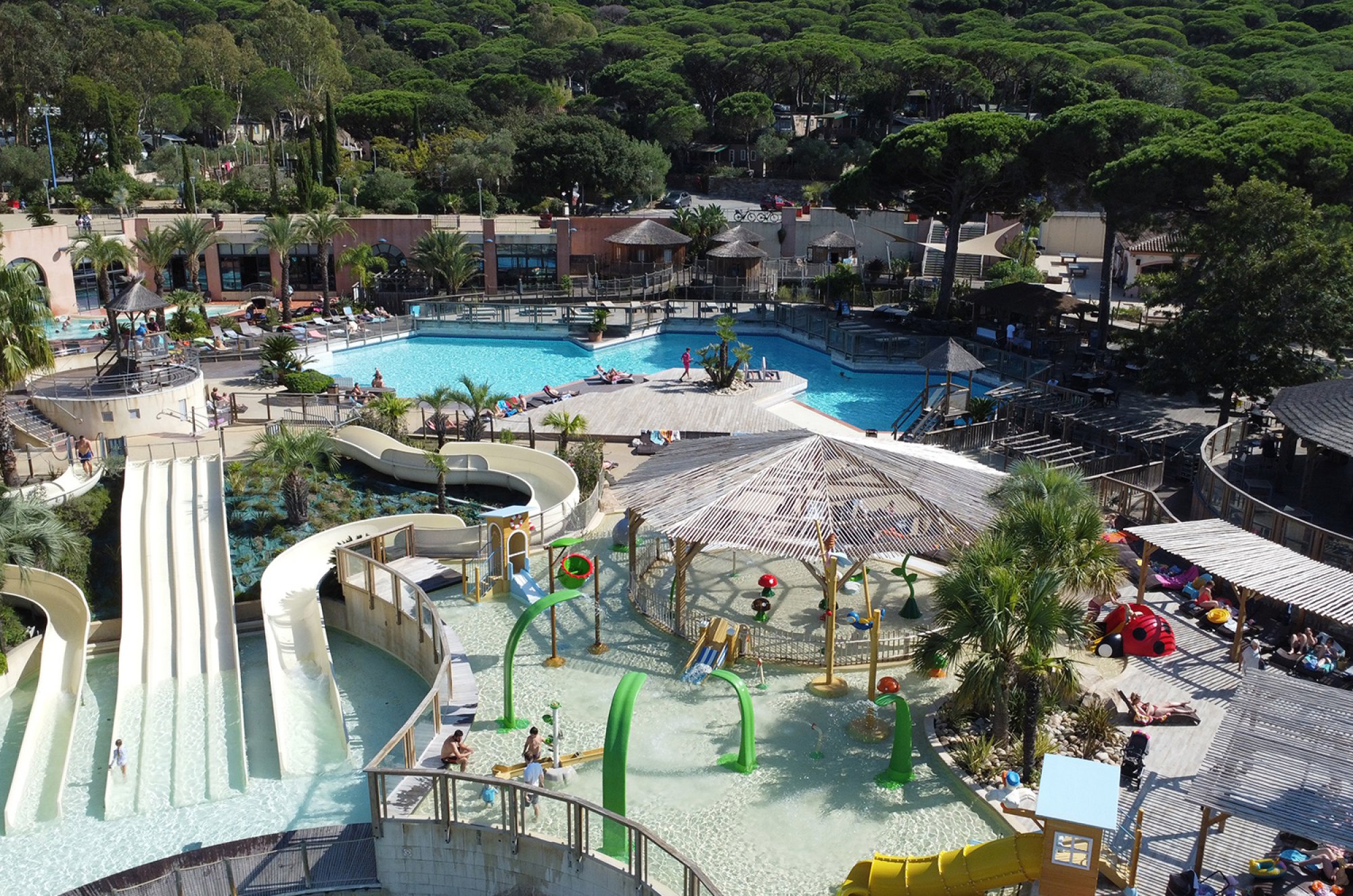 Der 5-Sterne-Campingplatz Les Tournels hat beim Design seiner Badelandschaft offensichtlich nicht gespart – ganz im Gegenteil.