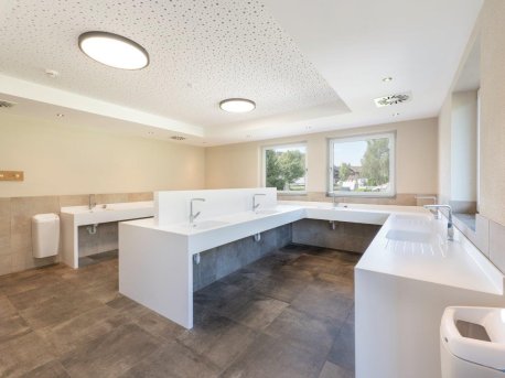 Es stehen drei Sanitärhäuser mit exklusiver Ausstattung zur Verfügung.
