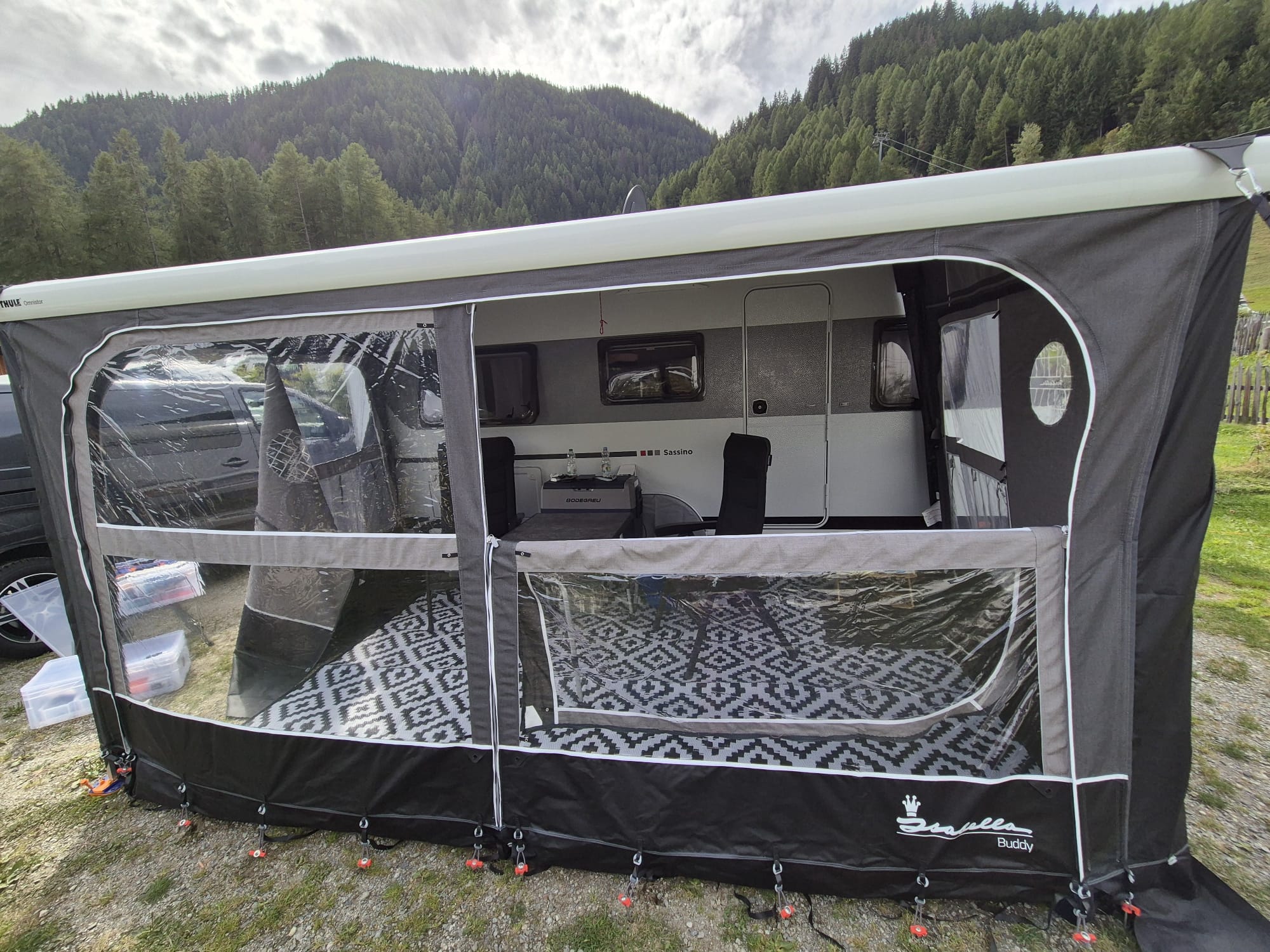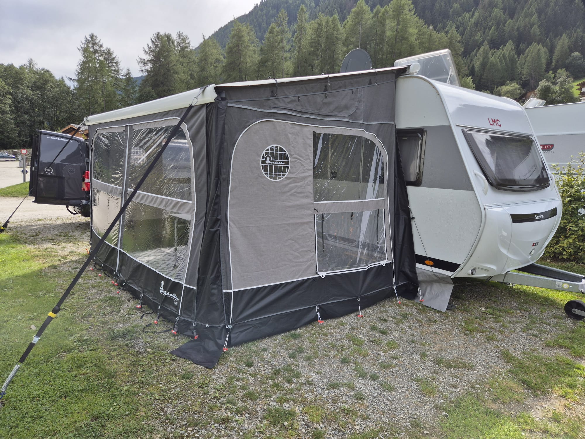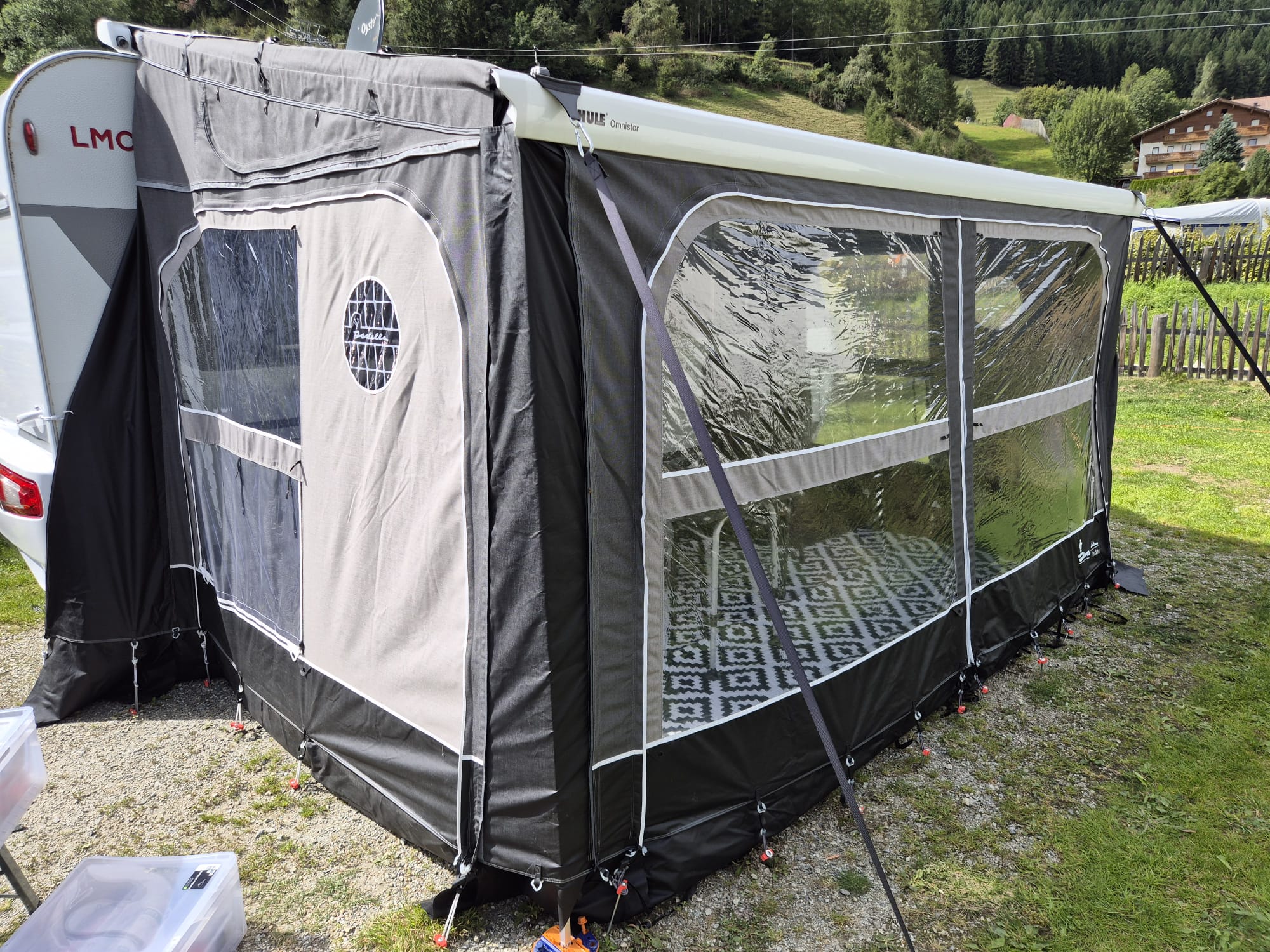Isabella Markisen Vorzelt geeignet für Markisse der Marke Thule Omnistor, Fiamma, Dometic Prostor Markisen Länge 400 cm, 410 cm Markisen Ausfall bis 250 cm Inkl. Spannstangen und reichlich Zubehör Seit 2024 nur die Seitenteile verwendet Ca. 4 mal !!!!! Für die Fotos haben wir das erste Mal auch den Vorderteil ausgepackt Viele Teile, wie auf den Fotos erkennbar, noch original Gardinensätze in Creme noch original verpackt Wegen Wohnwagen -wechsel wird das komplette Set verkauft Neupreis war 1.849,-