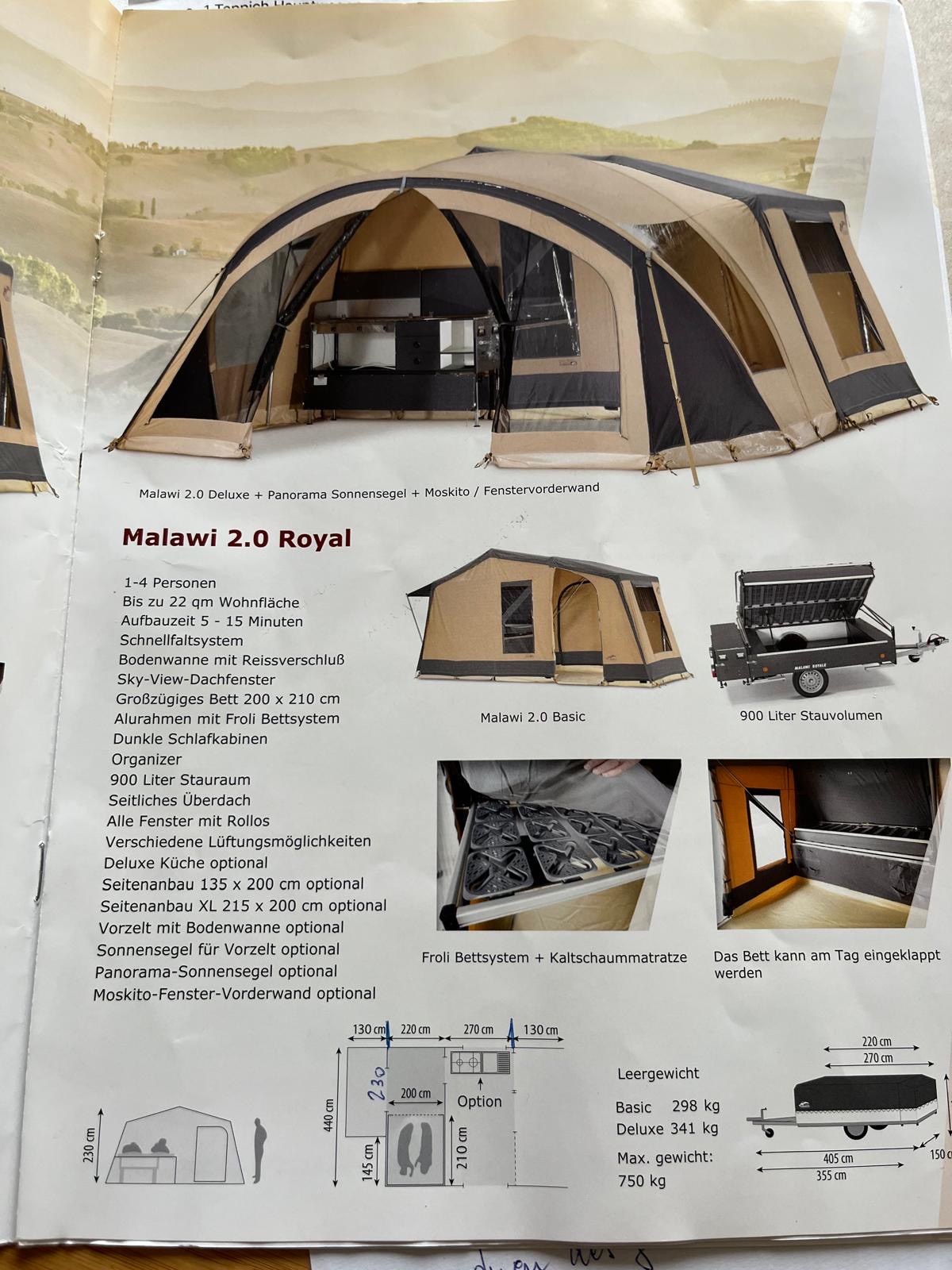 > NP war 11.500 Euro > inkl.Auflaufbremse AL-KO Achse, 750 kg. Achse > Panorama Sonnensegel mit Moskito Fensterfront > Kugelkopf Deichselaufbau für Fahrradträger bis 60kg. > Schlafbereich mit komfortablen Tellerrost Betten( 210cmx200cm) und dunklen mückendichten Schlafkabinen > Staumöglichkeiten unter der Abdeckplane für Tische, Stühle… > Der Zeltanhänger ist mit dem Vorzelt( Sonnensegel) in 2 Stunden komplett aufgebaut und befestigt. > aus gesundheitlichen Problemen muss er verkauft werden > bis jetzt nur 3x benützt > ohne Beschädigung und keine Fehler > Es handelt sich um einen Privatverkauf, daher keine Garantie noch Rücknahme.