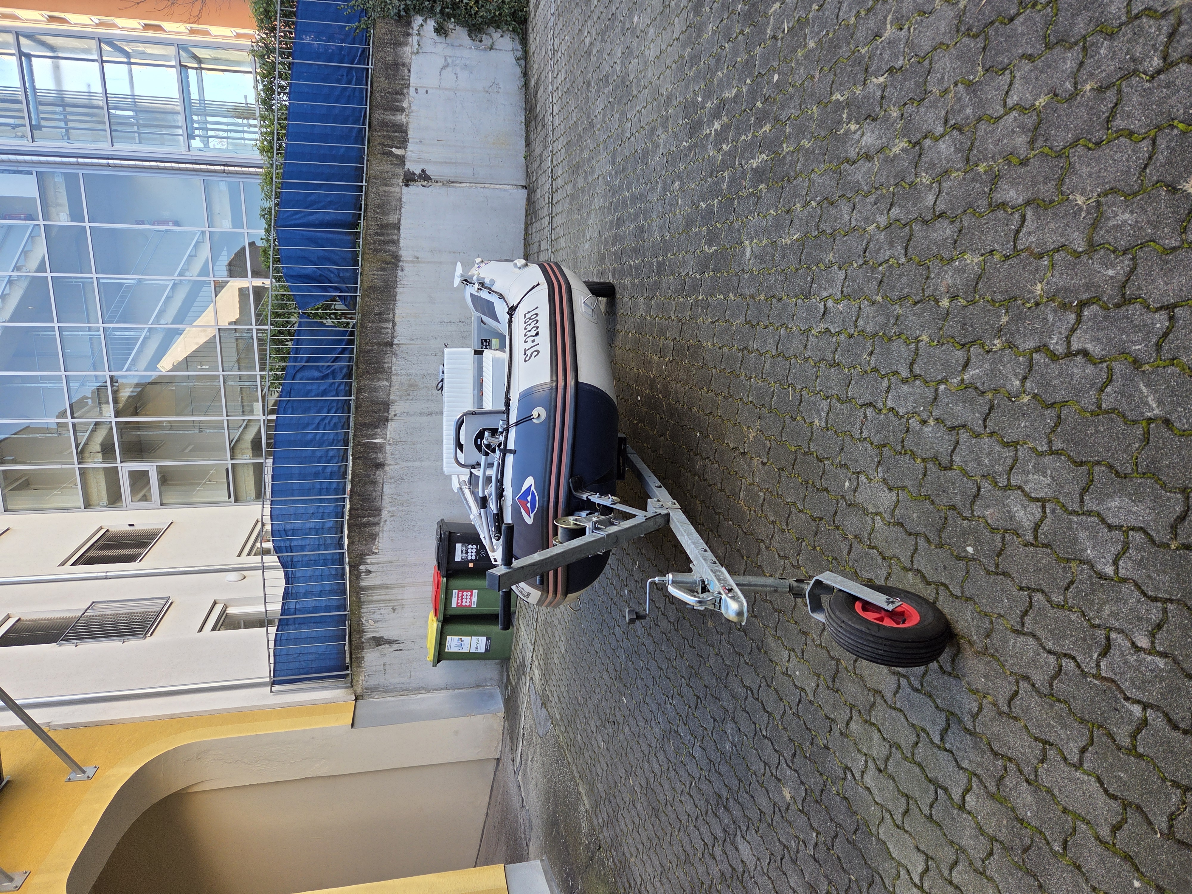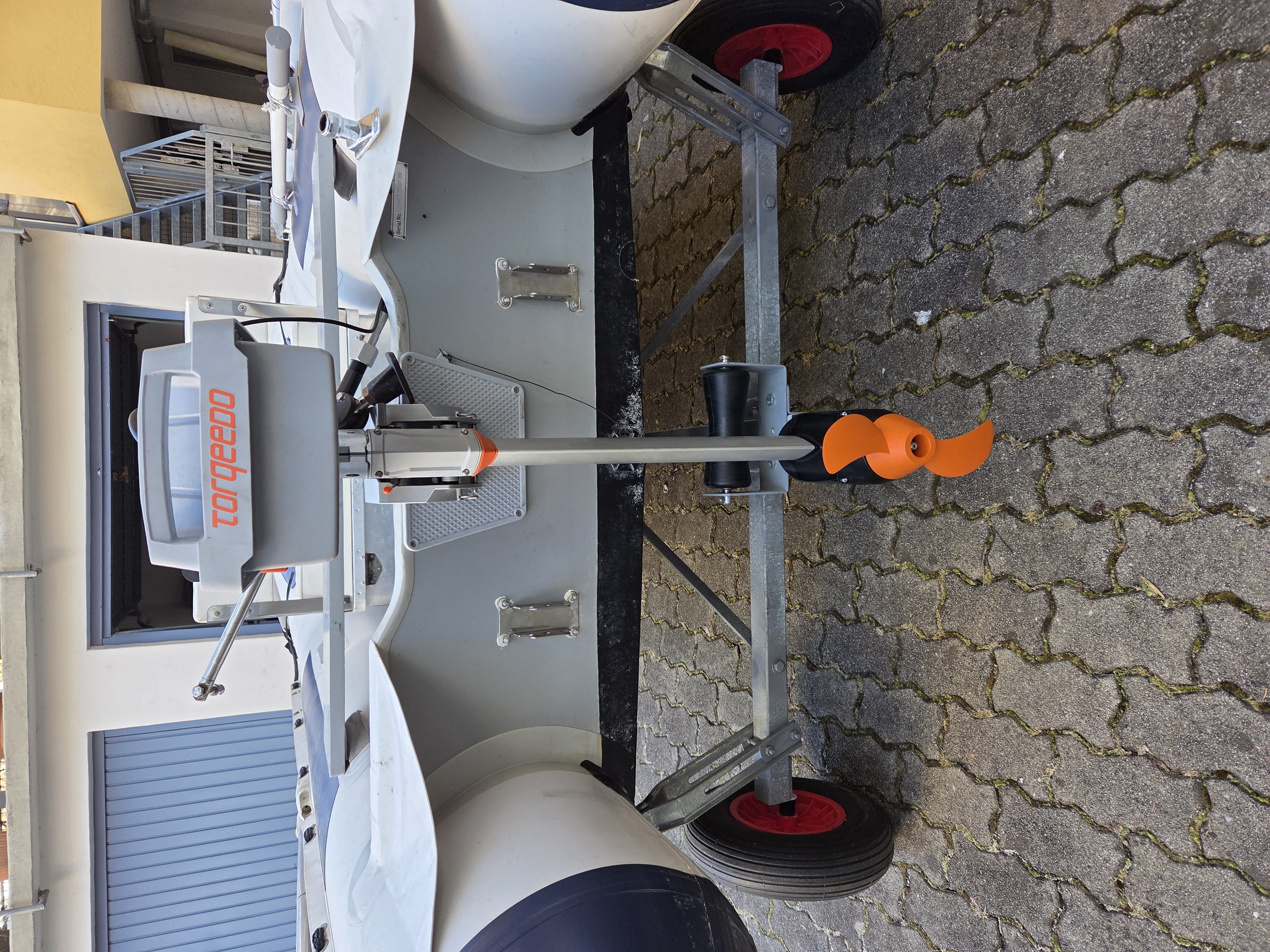Schlauchboot E-SEA 380 mit Aluboden, Sitzbank und Steuerstand. Elektromotor Torqeedo 1103. Bj. 2020 Zahlreiche Eratz.- und Zusatzteile: Fender, Anker, Leinen, Fahnenmast, Echolot, Heckräder, Bugrad, Badeleiter, Schwimmwesten, Bugtasche, Persenning, Kühl.- u. Stautaschen. Optional: Außenboardmotor 4Takt Mercury F20E Motor 20PS m. Elektrostarter Bj. 2011 € 1.300,- Slipwagen: 490,- nicht für den Straßenverkehr geeignet.