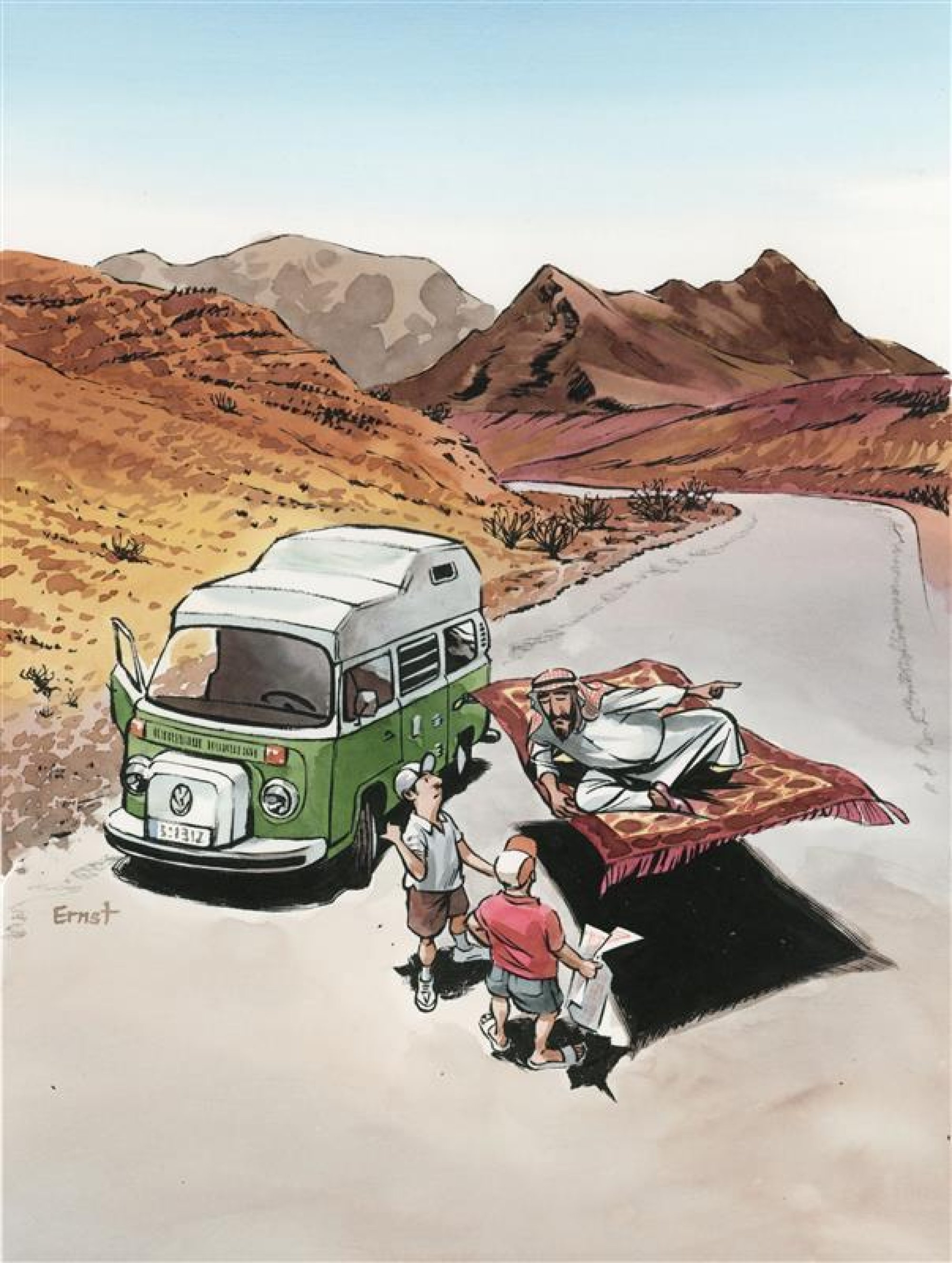 Wir machen einen gewaltigen Satz nach Sur. Das malerische Städtchen erfreut sich einer reichen maritimen Vergangenheit. Im sechsten Jahrhundert war Sur ein wichtiger Handelshafen und diente als Brücke zwischen der Arabischen Halbinsel, Indien, Südostasien und Afrika. Die felsige Küste zurück nach Muskat wird immer wieder von kleinen Sandstränden unterbrochen. Rummel á la Rimini? Fehlanzeige. Hier können sich Camper überall ihren Privatstrand aussuchen – gebührenfrei.Bei unserer Stadtrundfahrt durch die Kapitale Muscat kommen wir aus dem Staunen kaum heraus. Das Mutrah Fort mit seinen zinnenbewehrten Wällen zeigt das traditionelle Oman. Das Regierungsviertel mit dem Sultanspalast Al Alam und dem Finanzministerium feiert die architektonische Neuzeit, aber mit islamischer Ornamentik. In den prächtigen Bogengängen und glattgewienerten, äußerst prunkvollen Marmorboulevards spiegelt sich sogar unser Camper eins zu eins. Im Riyam Park setzt ein riesiges, stilisiertes Weihrauchgefäß, das wie ein überdimensionales Ufo über der Hügelanlage schwebt, ein weithin sichtbares, kulturelles Bekenntnis zur Weihrauchkultur dieser Ecke der Welt.