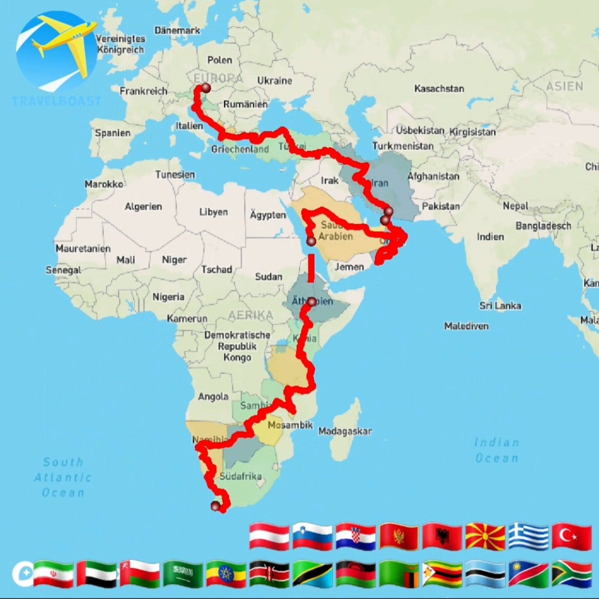 weit entfernt, wie Kapstadt von Wien.